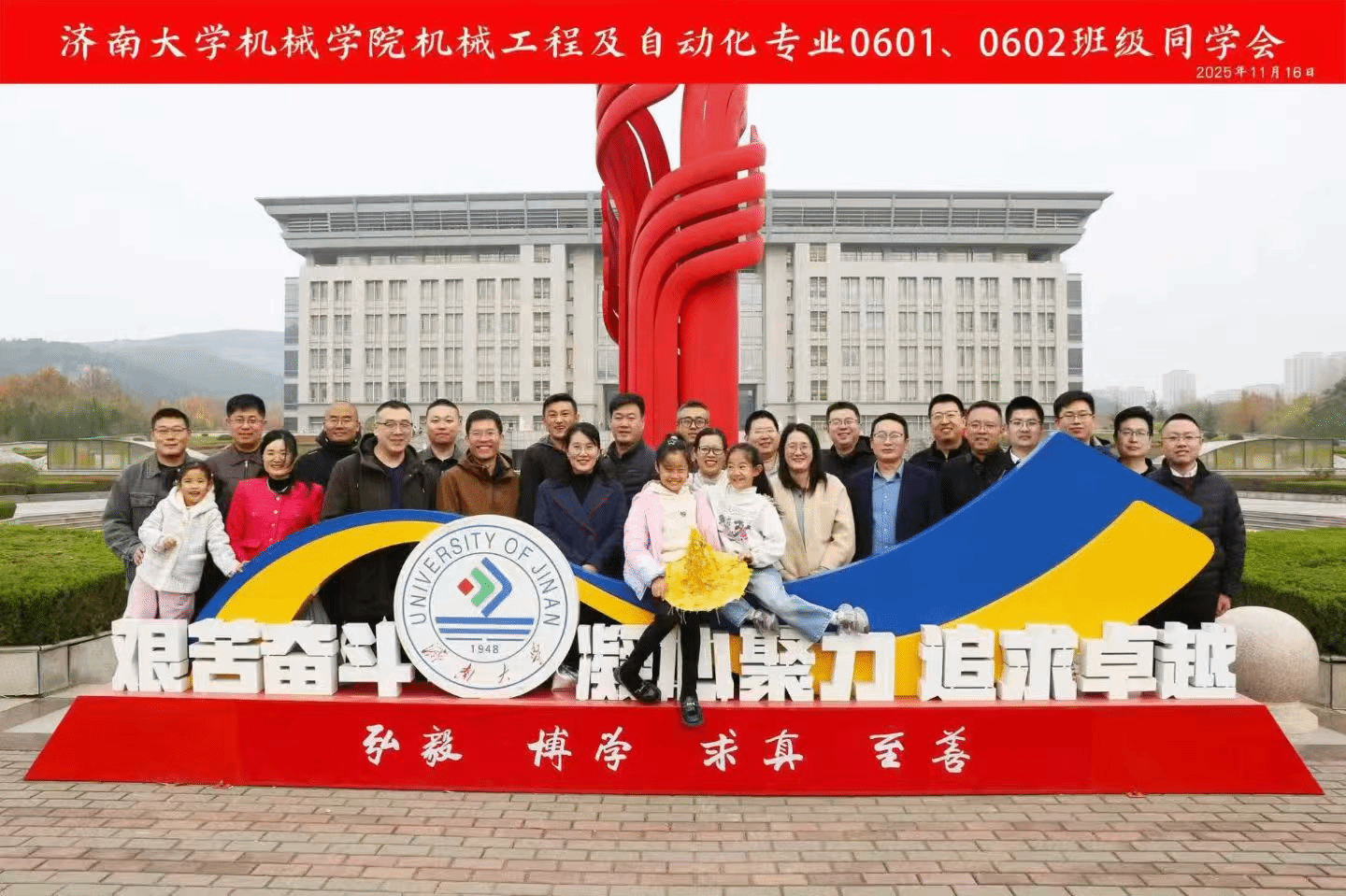 11月16日,同学们畅游母校,欣赏校园美景,感受母校发展变化;走访了曾经学习生活过的教学楼、宿舍楼、运动场;中午在员工食堂用餐,品尝济大美食,回味青春味道。